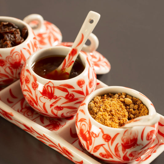 Vassoio con tre vasetti portasalse Peonia ceramica