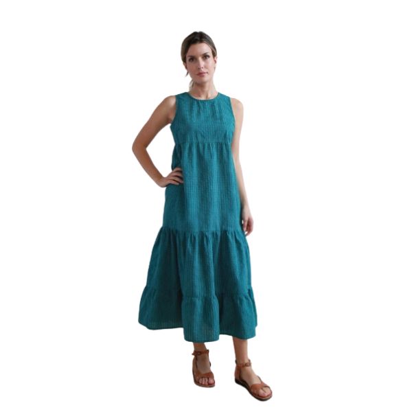 Il design senza maniche e la linea morbida e fluida valorizzano la figura garantendo comfort e libertà di movimento. Le balze sul fondo aggiungono un tocco femminile e senza tempo, perfetto sia per il quotidiano che per il tempo libero o le vacanze.
