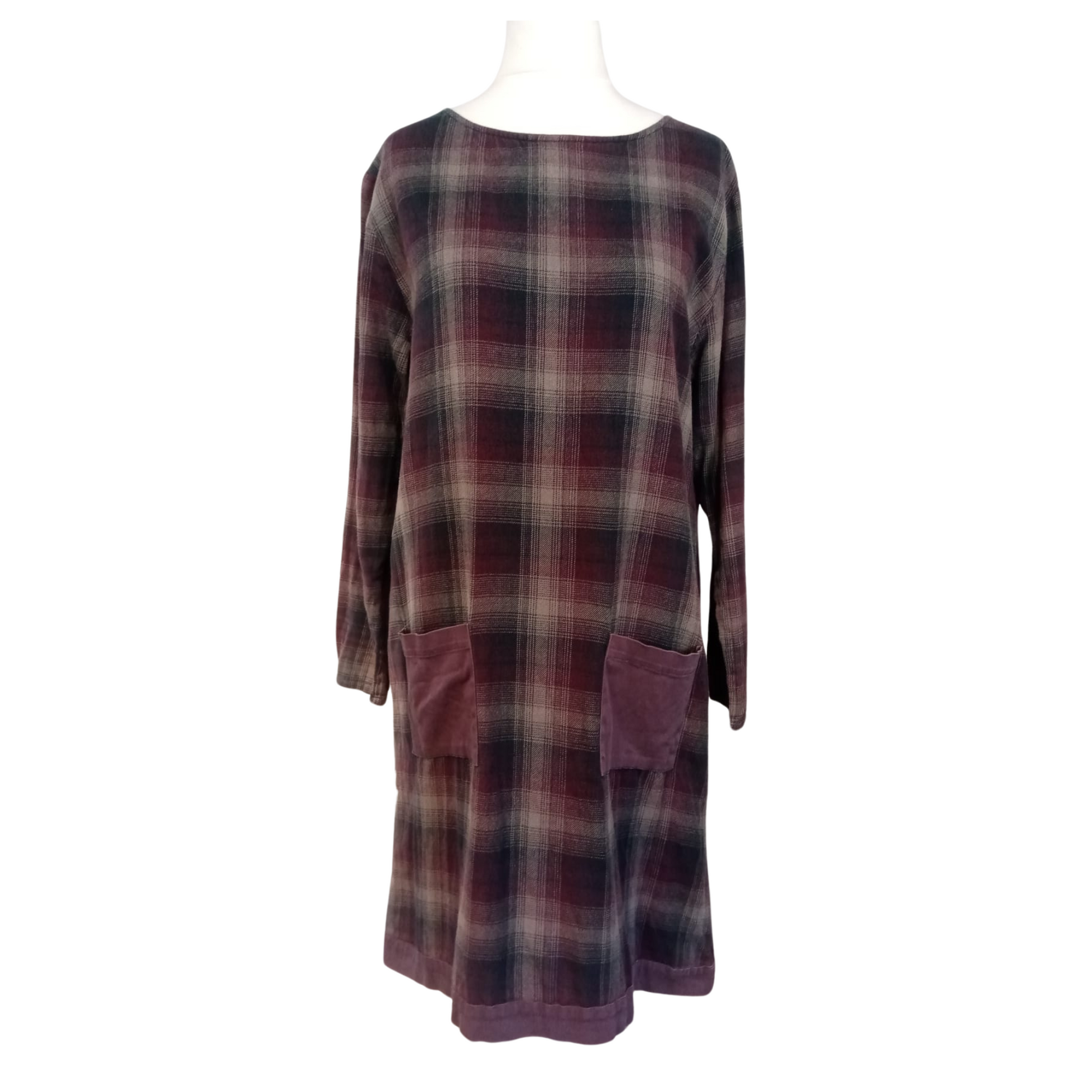 Abito in cotone a maniche lunghe con tasche e cerniera a contrasto sul retro. Taglia L.