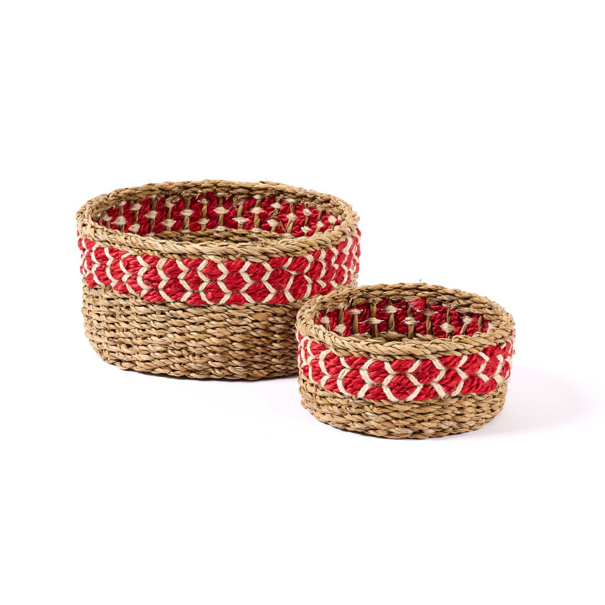 Realizzati a mano con materiali naturali quali hogla e juta, personalizzati con i colori delle feste ma utilizzabili tutto l'anno. Perfetti per confezionare cesti regalo personalizzati che possono poi essere riutilizzati come portaoggetti o svuota tasche. Resistenti e colorati, una pratica idea regalo che diventa un elemento di arredo.