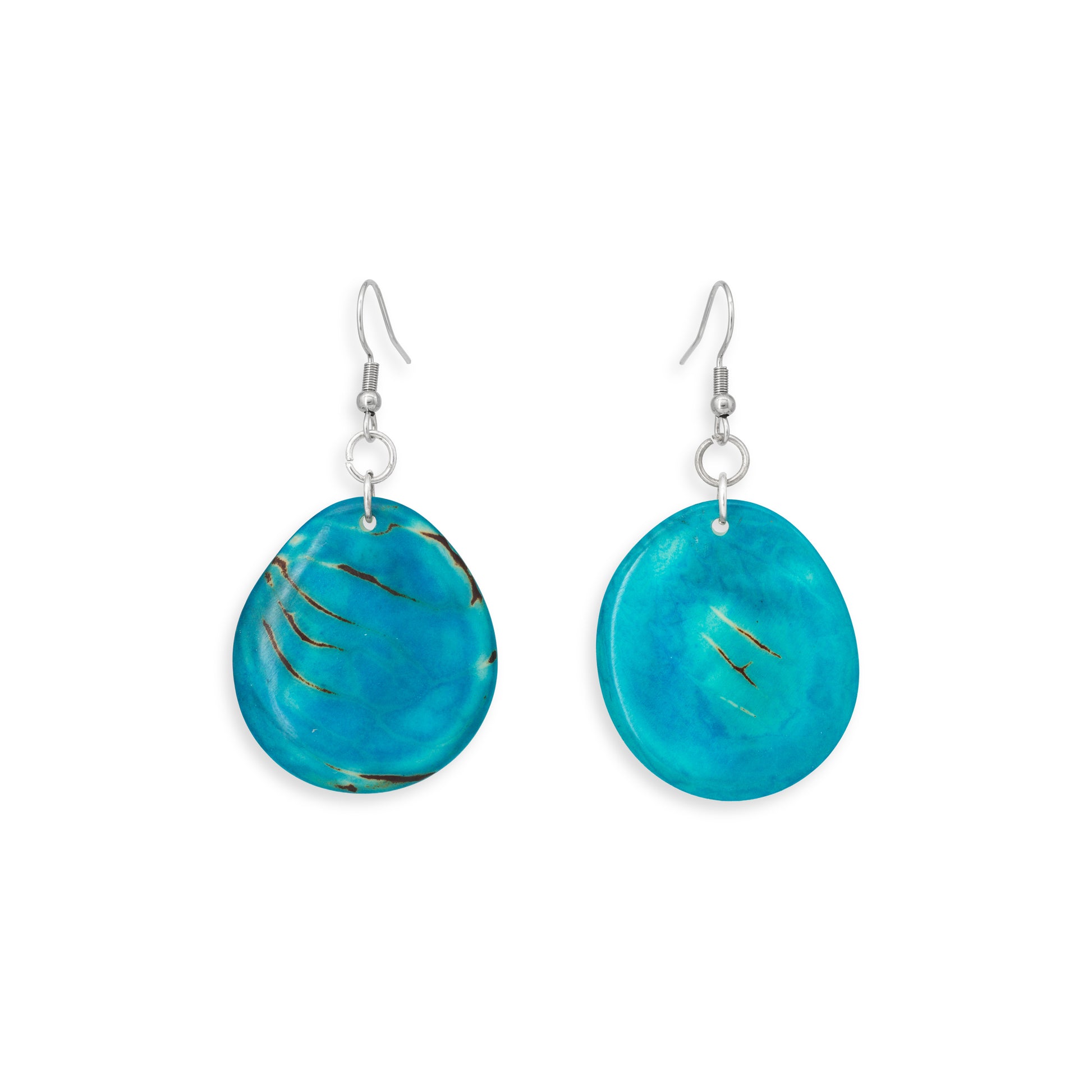 Orecchini pendenti realizzati in tagua. La tagua, o avorio vegetale, è ricavata in modo sostenibile dai semi di una palma della foresta pluviale
